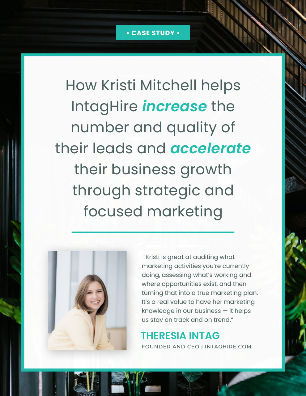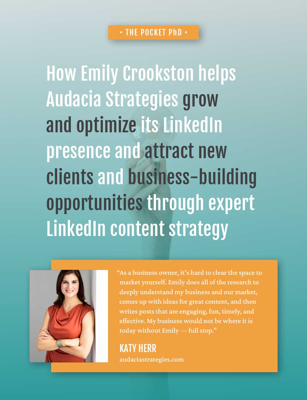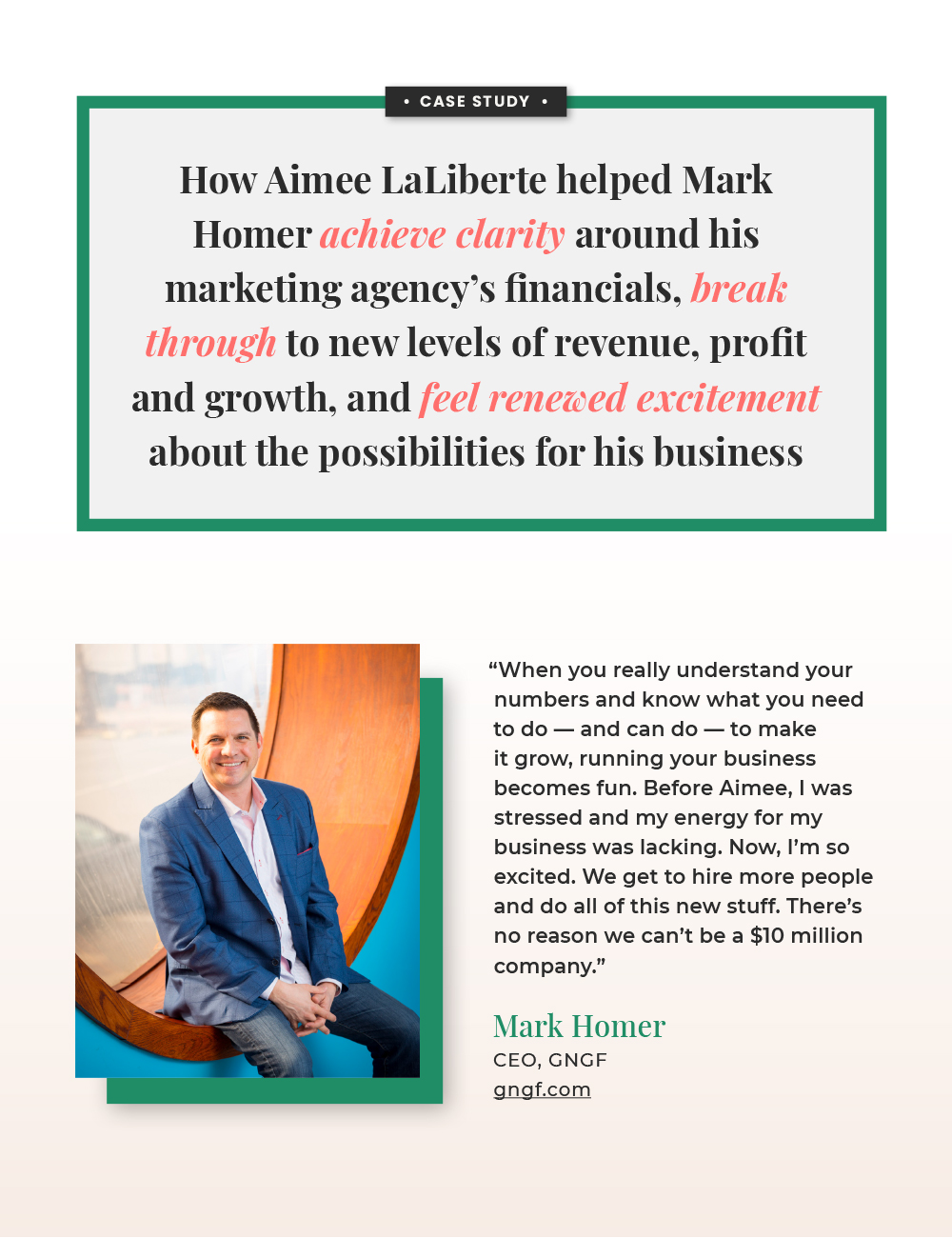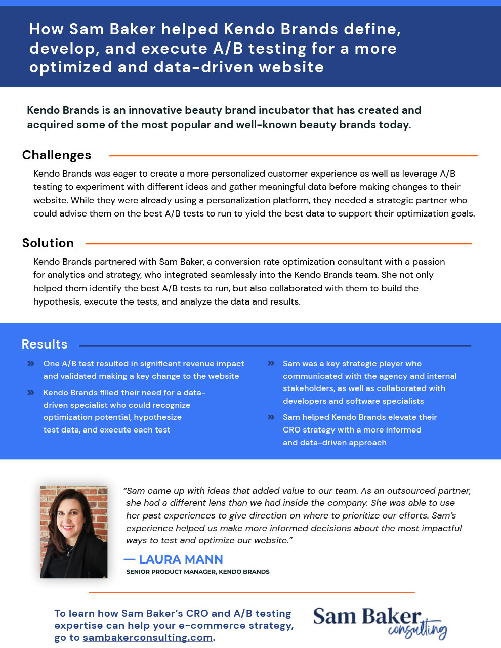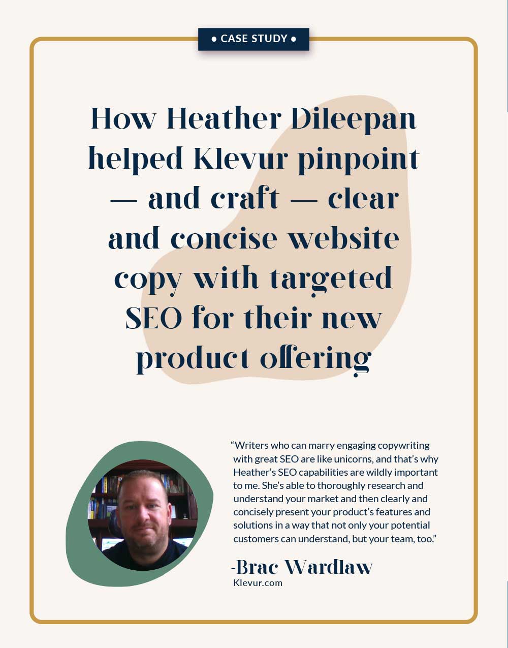 Get a sneak peek of my work Case Study Samples: One-Page Case Studies Click on a case study to preview Case Study for RaderCo Productivity & Health Coaching Company Case Study for Boon Logic Machine Learning Tech Company Case Study for Sam Baker Consulting E-Commerce Consultant Case Study for Kim Allchurch Flick Social Enterprise Consultant Case Study for Audacia Strategies Investor Relations and Corporate Communications Firm Case Study for Bauwerk Solutions Window + Door Supplier Case Study for Sweet Hospitality Group Concessions + Catering Company Case Study Samples: Full-Story Case Studies Click on a case study to preview Case Study for Merideth Mehlberg Executive Career Coach Case Study for Eman Ismail Email Strategist and Copywriter Case Study for RIM Logistics Logistics Solutions Company Case Study for Hocking Leadership Leadership & Philanthropy Consulting Firm Case Study for Audacia Strategies Investor Relations & Corporate Comms Firm Case Study for Kim Allchurch Flick Social Enterprise Consultant Case Study for RaderCo Business Productivity Consulting Firm Case Study for Anne Legg Data Strategist & Consultant Case Study for Bill Hickey EOS Implementor + Business Consultant Case Study for Cooper Management Consulting Leadership Development Firm Case Study for CAAEL Non-profit Case Study for GoldSky Security Solutions Cybersecurity Company Case Study for Sweet Hospitality Group Concessions + Catering Company Case Study for Boon Logic Machine Learning Technology Company Case Study for Spectacle Talent Partners Talent Acquisition Consulting Firm Case Study for Bauwerk Solutions Window + Door Supplier Case Study for brandID Branding & Web Design Firm Case Study for Link Elevating Philanthropy Legacy Giving Consulting Firm Case Study for Kiva Slade Lead Analytics and Operations Consultant Case Study for Oshman Family JCC The Z3 Project Case Study for Becky Lawlor Original Research Content Writer Case Study for Lake One Digital Digital Marketing Agency Case Study for Kathleen Wisemandle Clinical Operations Consultant Case Study for Emily Crookston Ghostwriter & Content Marketing Strategist Case Study for Tashana Thompson Fractional CMO Case Study for Jaqui Dix Online Office Manager Case Study for Kristi Mitchell Strategic Marketing Consultant Case Study for Wrecking Crew Media Video Production Company Case Study for Wesley Reece Mindset and Leadership Coach Case Study for TerraStrat Data Science Firm Case Study for Aimee LaLiberte Bookkeeper and Fractional CFO Case Study for Heather Dileepan Website Copywriter Ready to shine a light on your customers’ success? Let’s Get Started